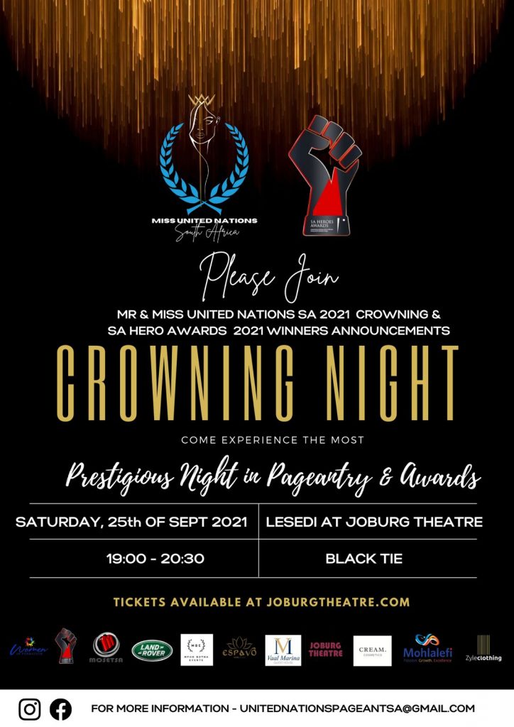 In a first of its kind event Miss United Nations SA Pageants and the South African Heroes Awards will be sharing one stage, crowning and announcing 2021 winners in their respective titles and categories.