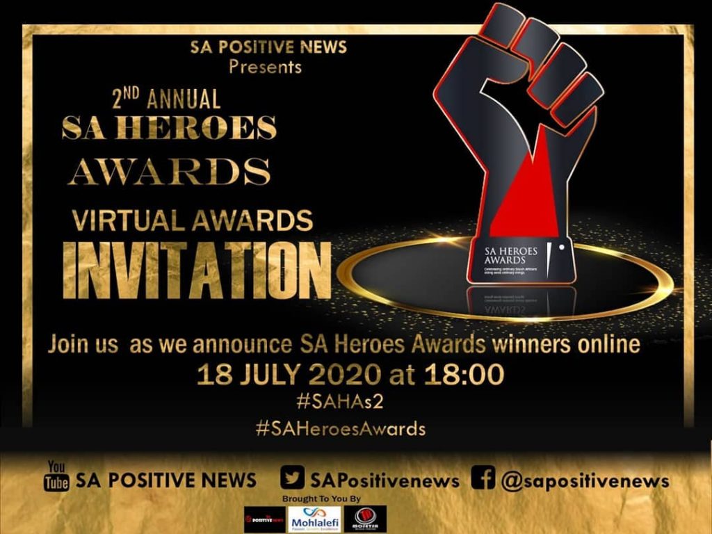 View the virtual awards on the SA Positive News YouTube channel https://www.youtube.com/channel/UCRXR57r7BGuHyQiMspKtj6g and on www.saheroesawards.co.za