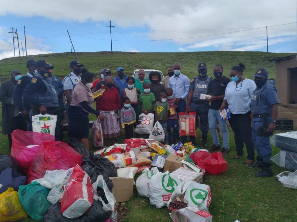Engcobo SAPS Crime Prevention Unit members reached out to a needy family at Mthintloni Locality, donating groceries and clothing.