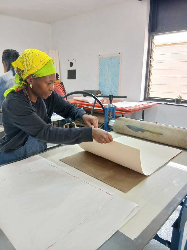 “Congratulations, the artists are so brave, I am so grateful for them taking the risk of creating in such a short space of time and for having the courage of taking in printmaking in the way that they did, I am proud of them and I hope that they will continue to develop more print artworks in their practices and I hope this whole experience shown them that it is possible and that they can do it easily” says Palesa in sending a message to the artists.
