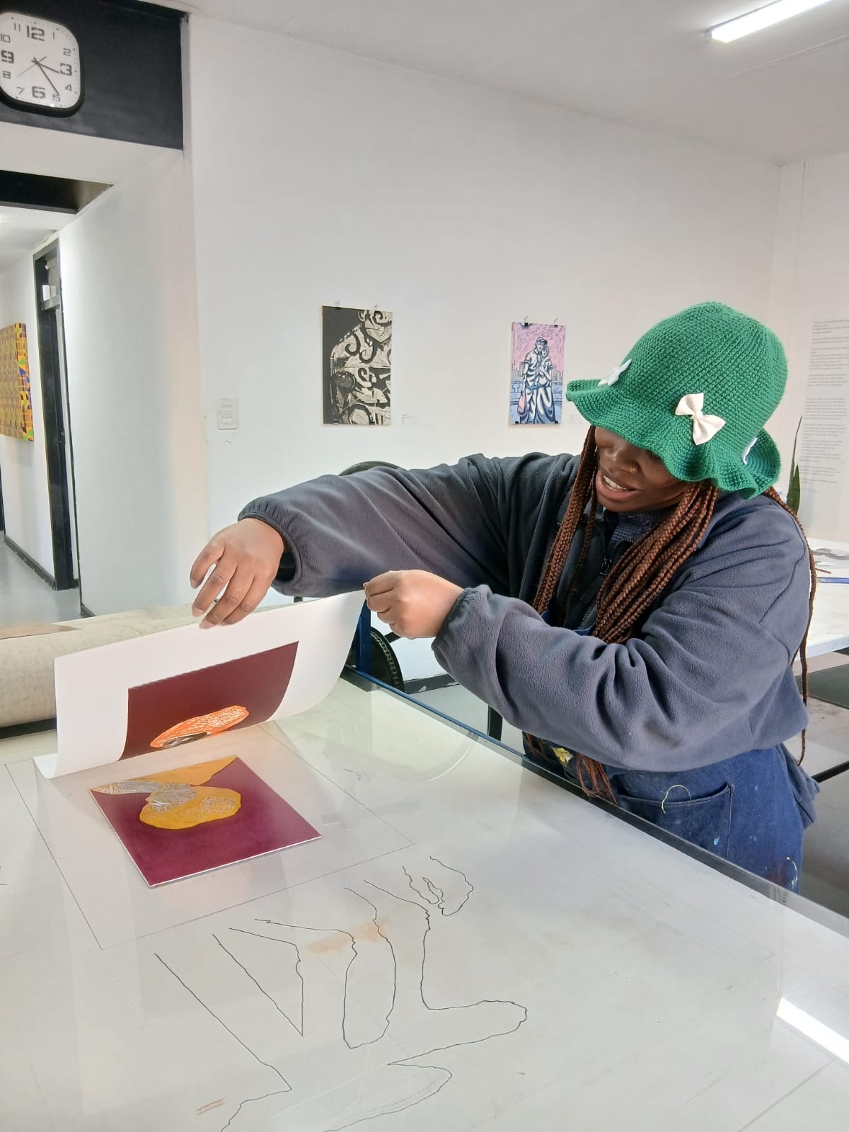 “Congratulations, the artists are so brave, I am so grateful for them taking the risk of creating in such a short space of time and for having the courage of taking in printmaking in the way that they did, I am proud of them and I hope that they will continue to develop more print artworks in their practices and I hope this whole experience shown them that it is possible and that they can do it easily” says Palesa in sending a message to the artists.